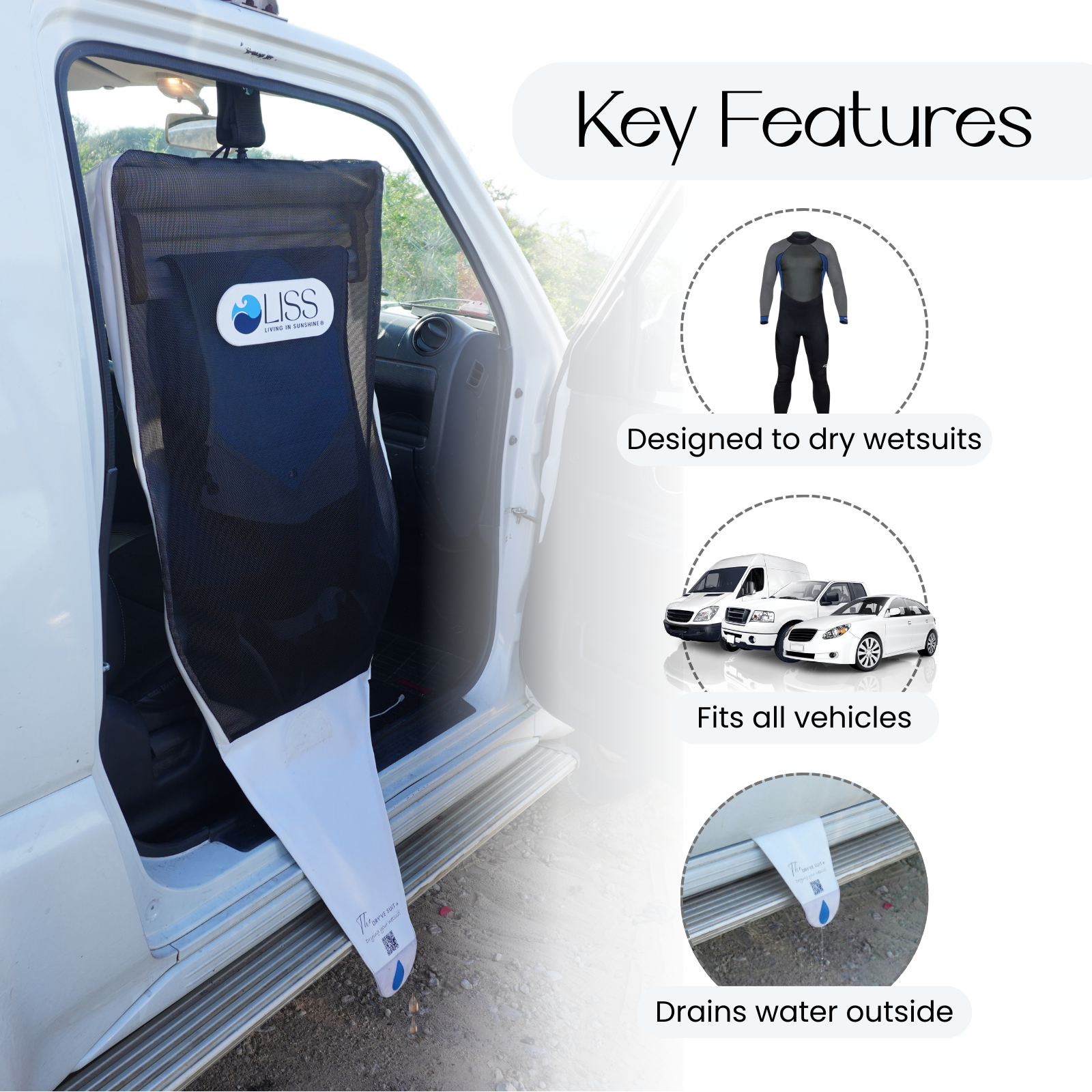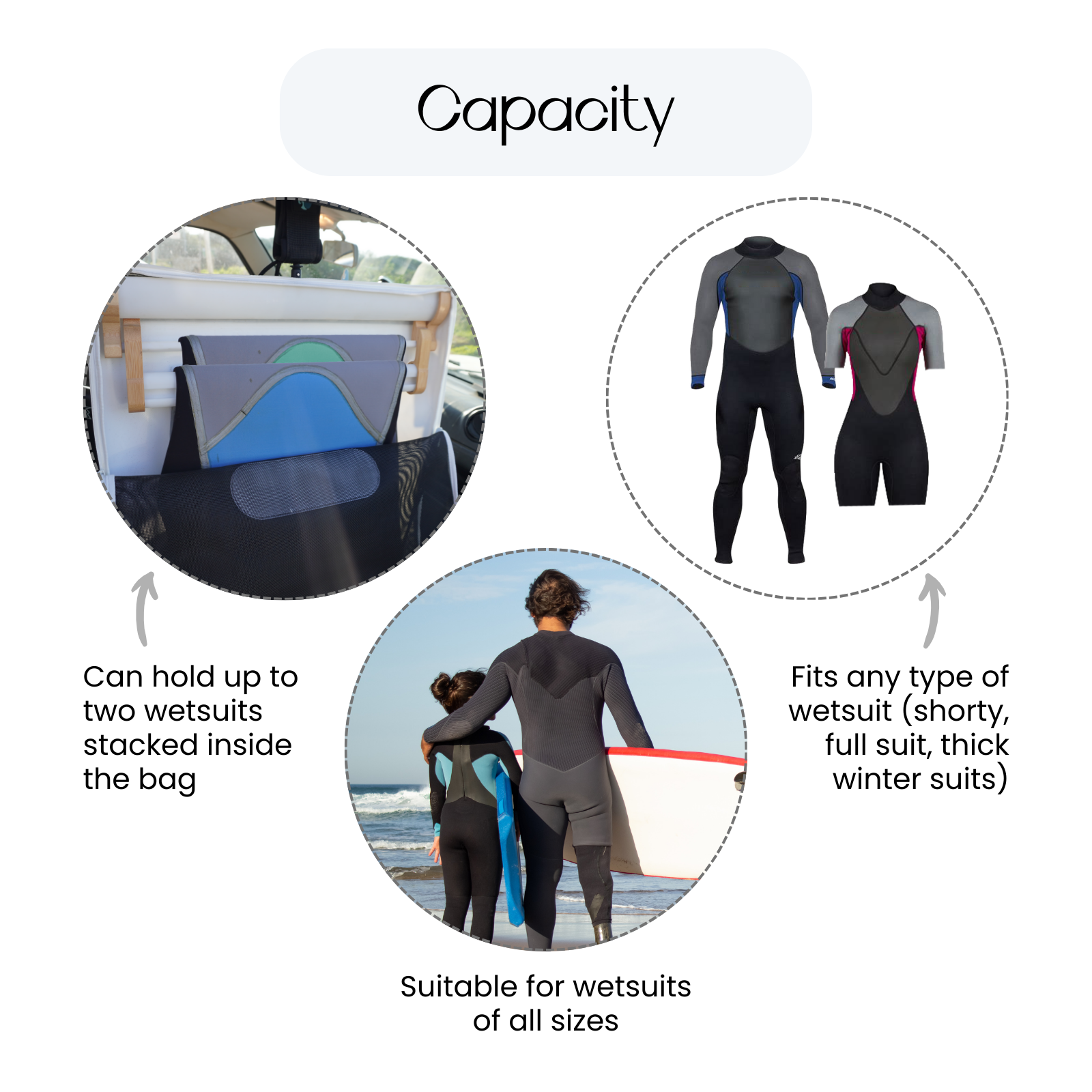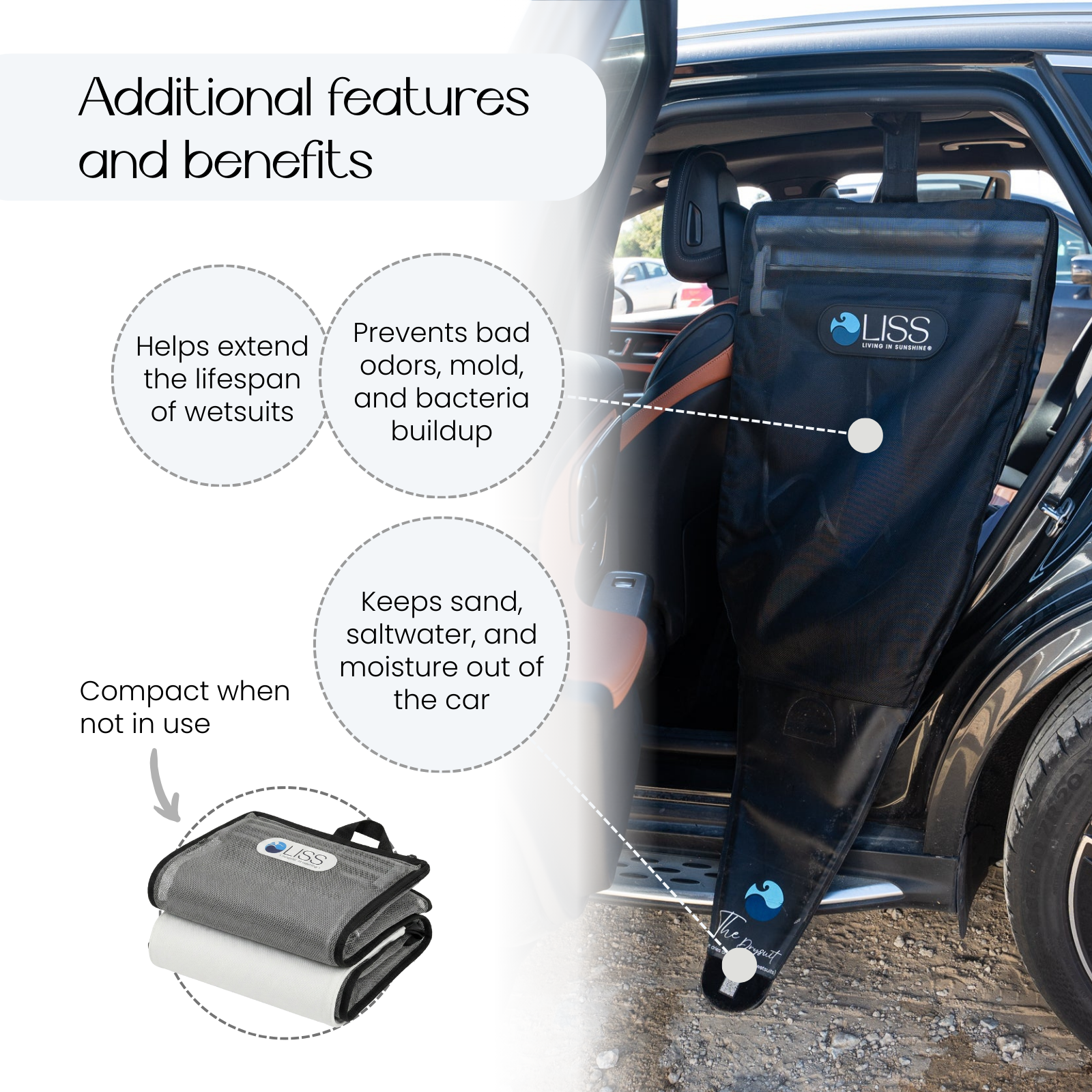 Keeps wetsuits organized, dry, and off your car seats